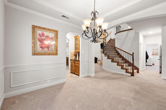 Welcome Home! If you’re looking for space, this gorgeous home has your family covered. This open-concept floor plan is ideal for any growing family who loves to entertain! Your eyes will go from the amazing curb appeal straight into the entryway with a two-story ceiling and an entryway with engineered hardwood flooring, which leads to plush carpeted spaces throughout the living areas and bedrooms. It has a spacious office with crisp white French Doors that’s perfect for anyone who works from home or homeschools. It could also be used as an exercise room or craft space. A large eat-in kitchen with a butler’s pantry and oversized island overlooks the family room. There’s also a separate dining room for holiday gatherings, Bible study, or it could be used as a reading room. The primary suite is massive with an ensuite bath, a separate tub and shower with double vanities, and is nestled in the back of the home for maximum privacy. All of the secondary bedrooms are upstairs, along with an often loft space that can be used as a play area or game room, and a media room for movie nights or for hosting the kids’ friends. Your furry family members will love the cozy backyard, and you will too, as you sit on the patio with a nice cold glass of tea and enjoy the Texas Summers. Come see what all this home has to offer!