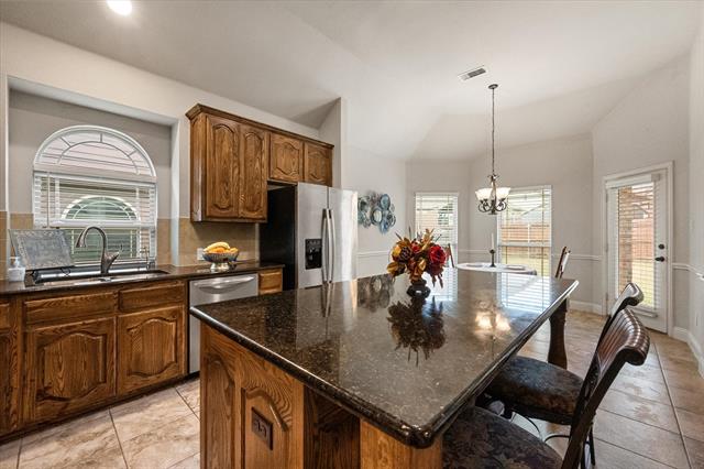 Decorative Lighting, Eat-in Kitchen, Granite Counters, High Speed Internet Available, Kitchen Island, Open Floorplan, Sound System Wiring, Vaulted Ceiling(s), Wainscoting, Walk- In Closet(s)