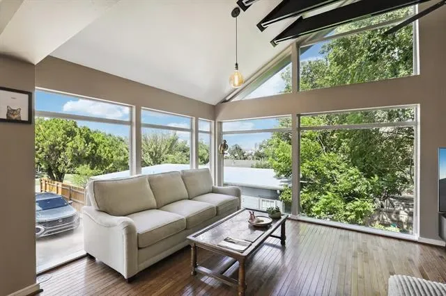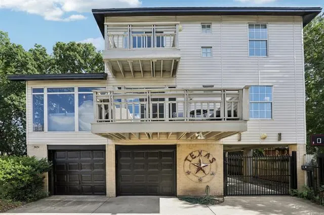 Welcome to this stunning 3-bedroom, 2.5-bath townhouse in Fort Worth’s Cultural District. Built in 1991, this contemporary home offers 1,773 sq. ft. across three levels with dramatic views of the downtown skyline, Dickies Arena, and nearby museums from walls of glass and multiple balconies. The flexible layout features soaring cathedral ceilings, a striking dual staircase, and a main living area with abundant natural light, a gas fireplace, and balcony access for al fresco dining. The kitchen includes a gas cooktop, built-in appliances, microwave, dishwasher, and ample cabinetry. Bedrooms are thoughtfully placed for privacy, with one on the main living level—perfect for a guest room, office, or flex space—and two upstairs, each with a full bath. With its contemporary design, skyline views, and walkable location near dining, shopping, and entertainment, this home offers the best of Fort Worth living.