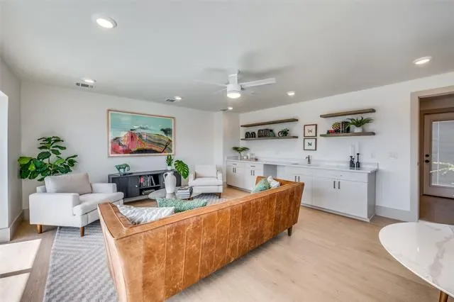 This stunning new construction townhouse in the highly desirable Dickies Arena area offers the perfect blend of modern luxury and unbeatable location in Fort Worth. Featuring 3 bedrooms and 2.5 bathrooms, this home boasts high-end finishes throughout, including sleek green tiled primary bath with a freestanding white soaking tub, seamless glass shower, dual vanities, and elegant gold fixtures' a gourmet kitchen with sage green cabinetry, expansive marble-look island, premium appliances, and seamless flow into the open-concept living and dining areas. The light-filled interiors showcase contemporary design with neutral tones, chic lighting, and large windows that invite natural light and connect seamlessly to outdoor spaces.