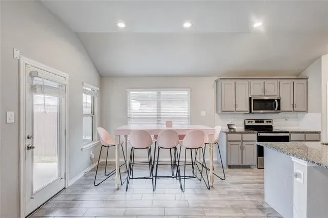 Welcome to this beautifully maintained 4-bedroom, 2-bath home featuring an inviting front porch and tucked away on a quiet cul-de-sac just outside Fort Worth. Designed with both comfort and style in mind, the home offers durable wood look tile flooring throughout the main living areas and carpet in each bedroom. The bright, open-concept layout seamlessly connects the kitchen, dining and living space, ideal for both everyday living and entertaining. The kitchen is equipped with stainless steel appliances, with a stand-alone island. Enjoy outdoor living from both the charming front porch and the spacious covered back patio, overlooking a fully fenced backyard perfect for relaxing, pets, or gatherings. This move-in-ready home blends modern finishes, functional living space, and a desirable location close to Fort Worth amenities while maintaining a peaceful neighborhood feel.
