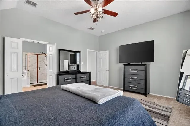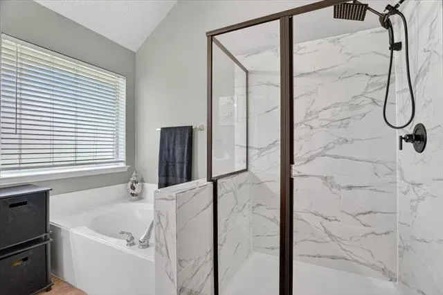 Inside, the layout features a spacious main living area and dedicated dining space, creating a functional flow for both everyday living and hosting. The home has seen thoughtful updates, including a fully renovated primary shower (2026), freshly painted kitchen cabinets with updated hardware, and new decorative light fixtures, offering a refreshed feel while still allowing room for personal touches.