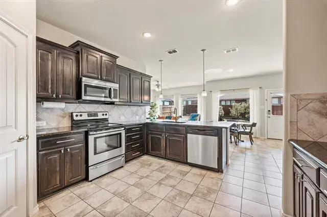 Welcome home to this beautifully designed 3 bedroom, 2 bathroom retreat located in the Ranches East Subdivision. Perfectly situated within the highly acclaimed Northwest ISD, this home offers the perfect blend of functionality and style. Upon entering, you are greeted by a versatile formal dining or living space. Whether you envision hosting holiday dinners or creating a sophisticated sitting room, this bonus area sets the tone for the rest of the home. Moving further in, the floor plan opens up to a bright, airy hub where the kitchen, casual dining, and family room flow seamlessly together. Tons of natural light flood these main areas, highlighting the open concept design. Need a dedicated workspace? This floor plan features a private office, ideal for remote work or a quiet study area, distinct from the three spacious bedrooms. Step outside to your extended back patio, offering plenty of room for grilling, outdoor furniture, and Texas sunsets. Living in Ranches East means you’re just steps away from fantastic community amenities, including a neighborhood pool and playground. Don’t miss this opportunity to buy into a vibrant community!