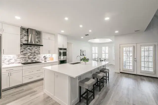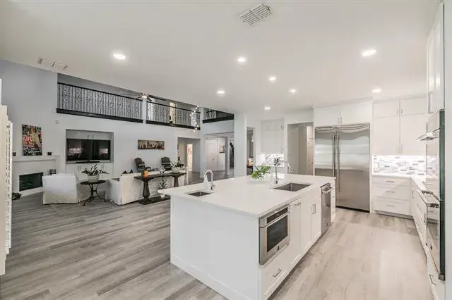 Exquisite Lakeside Luxury in the Resort at Eagle Mountain Lake Discover the pinnacle of refined living in this breathtaking 5-bedroom, 6-bathroom estate situated in the prestigious Resort at Eagle Mountain Lake. This exclusive, guard-gated community offers an 18-hole championship golf course, a private marina, a stunning clubhouse, scenic parks, and the convenience of a golf cart-friendly neighborhood, all within a district of top-tier schools. Spanning over 6,800 square feet, this architectural masterpiece sits on a nearly half-acre lot backing to a serene greenbelt and boasts stunning panoramic lake views, best enjoyed from the expansive covered patio, complete with a cozy outdoor fireplace—an entertainer’s dream. No expense was spared on the remodel, with the entire downstairs completely transformed to showcase luxury and modern elegance. The massive open-concept living area is enhanced by soaring ceilings, while the gourmet chef’s kitchen features an oversized island, quartz countertops, a gas cooktop, double ovens, a built-in refrigerator, and an enormous walk-in pantry, perfect for hosting in style. The main-level primary suite is a private retreat, offering unparalleled space, a resort-inspired ensuite with a dream shower, and a custom-built walk-in closet. A second downstairs bedroom with a private ensuite provides flexible accommodations, while upstairs, a second primary suite is accompanied by two additional guest bedrooms, each with access to beautifully remodeled baths. A private office, spacious upstairs living area, and dual staircases add to the grandeur of this home. With a 3-car garage and premium upgrades throughout, this property seamlessly blends luxury, comfort, and an unbeatable lakeside lifestyle. Don’t miss this rare opportunity—schedule your private showing today!