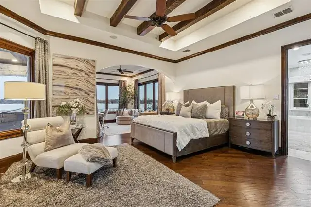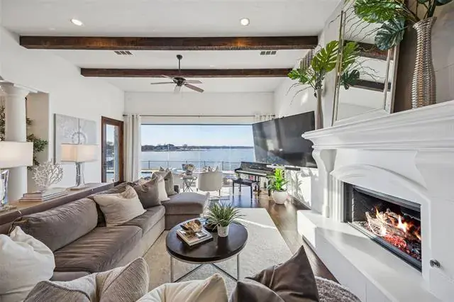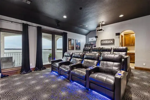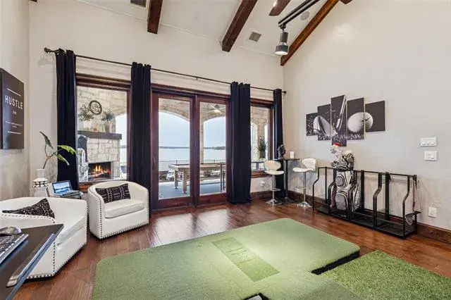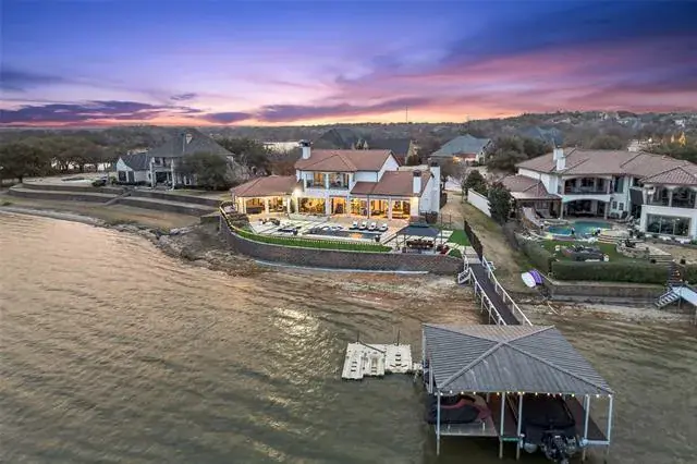 Poised on the open waters of Gated Resort on Eagle Mountain Lake, this extraordinary, one-of-a-kind custom estate defines lakefront luxury. Designed for those who expect the exceptional w-sweeping lake views through dramatic walls of glass, refined architectural details & seamless indoor-outdoor living that rivals the finest private resorts. Grand living is nothing short of spectacular. The open concept flows effortlessly into the dining area & expansive covered patio, creating a breathtaking backdrop for everyday living & unforgettable entertaining. Gourmet kitchen is a showpiece, outfitted w-Fisher & Paykel professional range, Monogram commercial-grade refrigeration, gas cooktop w-griddle, dual dishwashers + an oversized island. Primary suite is a private sanctuary, tucked away on the main level w-stunning lake views, a spacious sitting area, tiered ceilings w-wood beams + direct access to the patio. The spa-inspired ensuite bath is magazine-worthy! A secondary guest suite on the main level offers its own ensuite bath for elevated guest comfort. Exceptional main-level amenities include an executive study, a full pool bath w-direct outdoor access, a well-appointed laundry room w-electronic dog door & private dog run & a state-of-the-art golf simulator room. Upstairs, 3 generously sized bedrooms each feature private ensuite baths along w-a balcony capturing breathtaking lake views. The private theater room delivers a true cinematic experience w-luxury seating w-heating, cooling + motion features. The outdoor living experience is unparalleled. Two oversized patios w-electric drop-down screens, a wood-fired pizza oven, outdoor fireplace, covered pergola + a resort-style pool create the ultimate lakeside retreat. A private dock w-one boat & two jet ski lifts + a floating dock places open-water adventure just steps away. Nestled on a quiet cul-de-sac in a 24-hour gated community, Eagle Mountain Resort offers an 18-hole championship golf course & resort-style amenities.
