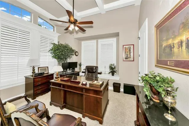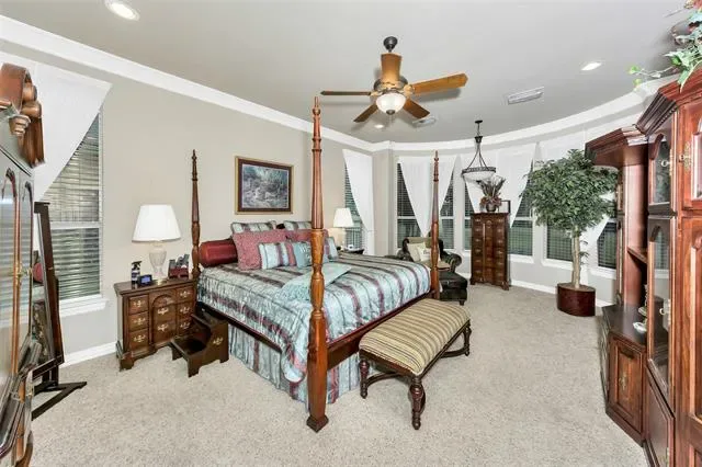 Luxurious home in 24-7 guarded gated home on pristine 18 hole golf course lot in waterfront community. Stunning! New Roof, Exterior painted, plus new AC. Features 4 beds, 4.5 baths, 2 living areas, 2 dining, media &' game rms plus spacious study featuring coffer beamed ceiling, plantation shutters. Impressive flex rm with wood floors &' plantation shutters. Upscale appliances, Jenn-air &' Bosch, ensuring highest culinary standards plus butlers pantry for chef’s delight while entertaining with ease. Elegant wood floors, archways, art niches, extensive moldings &' elegant fixtures create a refined ambiance. Spacious primary suite offers a tranquil retreat overlooking golf course. The versatile room would be the perfect spot for a nursery next to the primary suite. Living area with floor to ceiling brick &' stone, gas log fireplace, &' electric shades. Upstairs features include media rm with bar sink, next media is half bath &' billiard-game rm overlooking spacious covered balcony with scenic views of golf course. Secondary bed with golf course view &' private bath. 3rd bed plus bath. 4th bed has been converted to full rm closet &' private sitting rm. This unique rm could be workout rm, sewing room playroom or converted back to another bed with walk-in closet. Private patio just outside of living area perfect for private entertaining &' enjoying scenic views of the lush golf course surroundings. 2 tankless water heaters to ensure everyone enjoys hot water at all times! Practical mud area &' generous laundry rm with sink add convenience to your daily routine. Expansive 3 car gar comfortably accommodates cars &' a golf cart, making it a golfer''s dream. Experience a lifestyle of sophistication &' leisure in this meticulously designed home. Amenities include golf, clubhouse restaurant, bar, 2 pools, fitness area, pickleball, tennis &' basketball courts, playground, beach area, boat ramps, boat slips. Zoned for new Eg Mtn High School. Past 11th Tee. $10K Carpet Allow with accepted offer