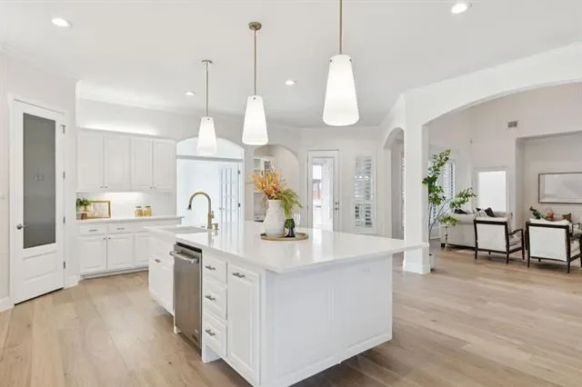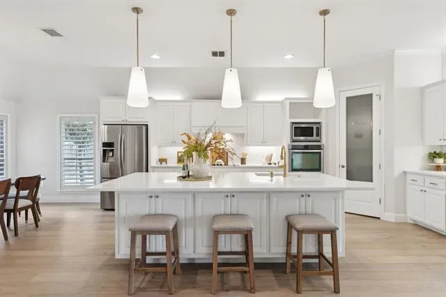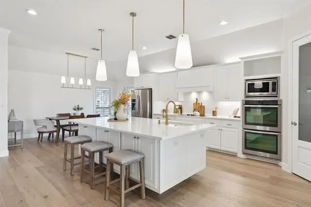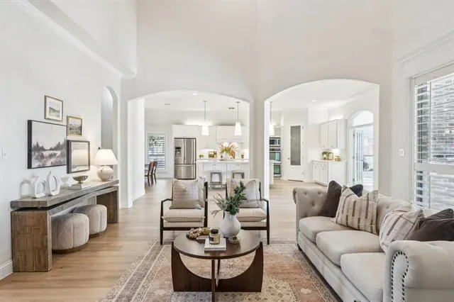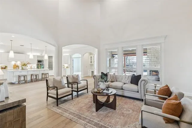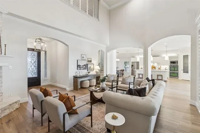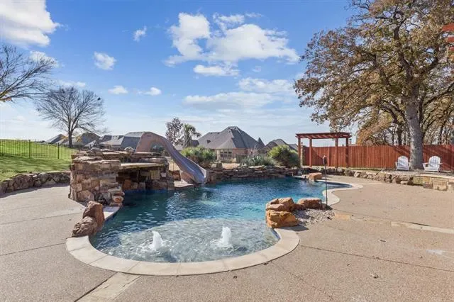 Welcome to this stunning, remodeled home located in the 24-7 gated and guarded Resort on Eagle Mountain Lake. Situated on over half an acre backing to the golf course, this exceptional property offers a circle drive, oversized driveway, and 3 car garage providing abundant parking and impressive curb appeal. Inside, the home has been thoughtfully updated with new hardwood flooring, a beautifully remodeled kitchen, updated lighting throughout, and new stonework on the fireplace. The open concept layout seamlessly connects the kitchen, living, and dining areas, creating an ideal space for everyday living and entertaining. The kitchen features timeless finishes, quartz countertops, an oversized island, double ovens, and ample storage. All four bedrooms are located on the first floor, with a private primary suite thoughtfully separated from the secondary bedrooms. Two additional oversized living spaces offer flexibility, one just off the kitchen and another upstairs complete with a half bath, perfect for a game room or media space. Step outside to your private backyard oasis. Enjoy a large covered patio with a fireplace and built in outdoor kitchen overlooking the resort style pool featuring a waterfall, slide, and grotto style cave. With golf course views, exceptional privacy, and plenty of yard space remaining, this outdoor area is perfect for relaxing or entertaining. This one of a kind community offers unmatched amenities, including a clubhouse with restaurant and bar, fitness center, two community pools, playground, basketball and pickleball courts, beach area with pergolas, boat slips and boat ramp, and a full calendar of community events. Zoned to the brand new Eagle Mountain High School! Luxury living, resort amenities, and golf course views, this home truly has it all!