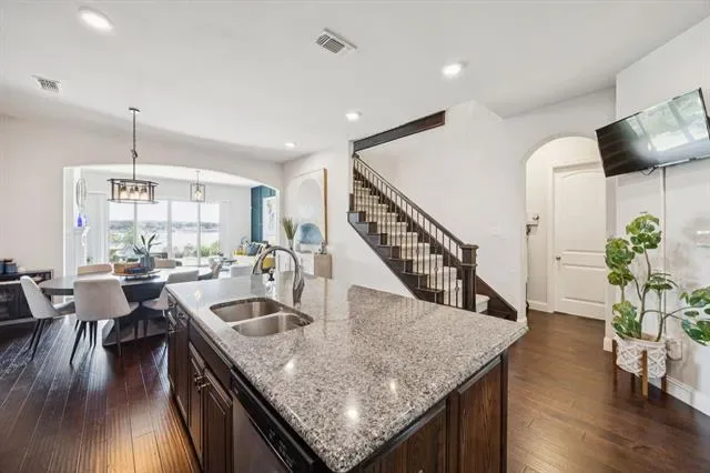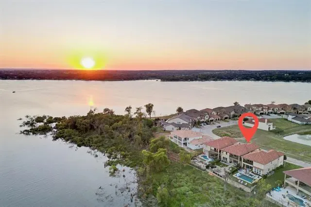 Experience luxury lakeside living in this beautiful home overlooking Eagle Mountain Lake, located in The Resort, the prestigious 24-7 gated and guarded golf course and lake community. From the moment you enter, you''re greeted by rich hardwood floors and breathtaking lake views that fill the open-concept main living area. The spacious downstairs layout features a gourmet kitchen that flows seamlessly into the living and dining areas, with sliding doors opening to an expansive flagstone patio—perfect for outdoor entertaining. The main level also offers a dedicated office, utility room, half bath, and a luxurious primary suite with stunning lake views, a spa-like en-suite bath, and an oversized custom closet. Upstairs, you''ll find a large game room, additional living area, three generously sized bedrooms, two full bathrooms, and a versatile bonus room. Enjoy peaceful island living with nightly visits from deer, mesmerizing sunsets, and convenient access to the lake from the beachfront entry or from the boat dock that are both within walking distance. The low-maintenance backyard is designed for relaxation and entertaining, featuring lush turf, an extended flagstone patio, a cozy fire pit, and multiple seating areas that reach all the way to the fence line. Resort style amenities include an 18-hole golf course, private marina with boat ramp and dock, two swimming pools, fitness center, tennis and basketball courts, and a clubhouse with restaurant and bar. All this just 25 minutes from downtown Fort Worth, offering the perfect balance of serenity and convenience.