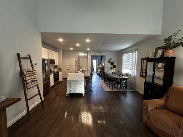 The main level is designed for comfortable living and easy entertaining, with an OPEN-CONCEPT KITCHEN AND LIVING AREA. The kitchen includes 42-inch cabinetry, granite countertops, stainless-steel appliances, and a peninsula that adds extra seating and prep space. Privacy blinds and durable vinyl plank flooring throughout the common areas are already installed—saving buyers both time and expense.