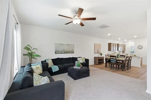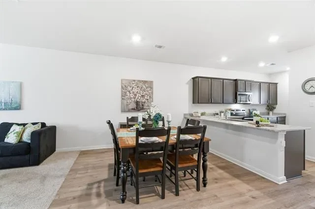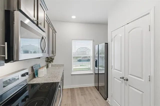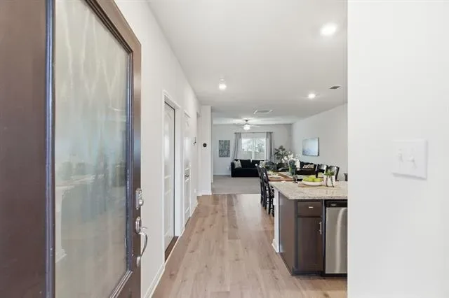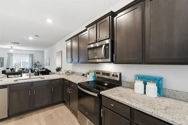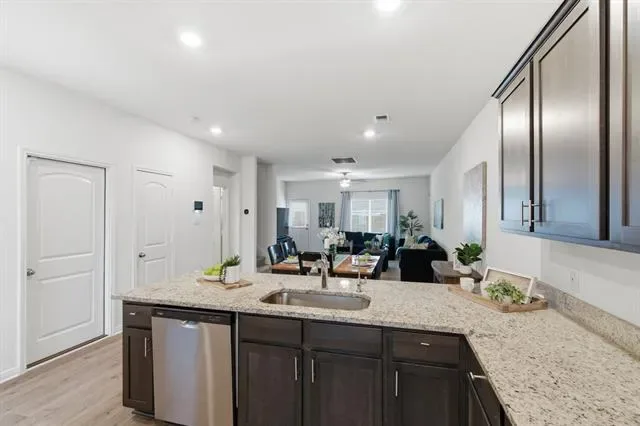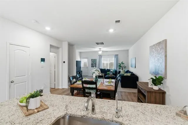 Situated on a premium corner lot, this home features a bright, open layout that seamlessly connects the living, dining, and kitchen areas—ideal for both everyday living and entertaining. The kitchen stands out with granite countertops, modern appliances, and ample storage.