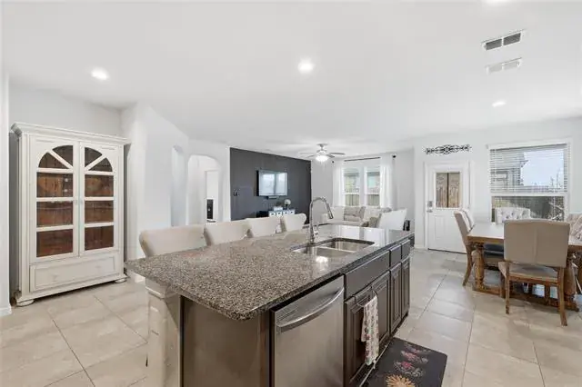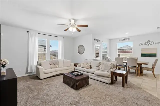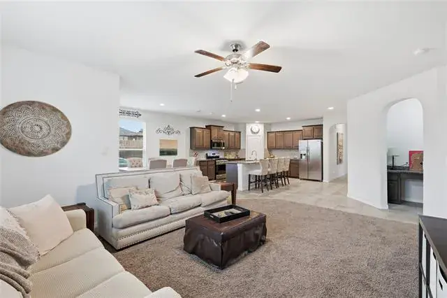 Located on a spacious corner lot, this 2019 4 bedroom, 2 bath home offers a flowing floor plan with a smart split bedroom layout. The kitchen is the heart of the home with ample counter and cabinet space, walk in pantry, oversized granite island, gas stove, and clear sightlines to the living and dining areas. The living space features a custom vertical accent wall and natural light throughout. The primary suite is tucked away from the secondary bedrooms and looks out to the backyard. The private en suite bath features dual sinks, garden tub, separate shower, and a large walk in closet. Bonus spaces include a 4×7 niche area and a 5×7 mudroom. Enjoy the covered back patio and expansive backyard offering flexibility for outdoor living. Located in desirable Northwest ISD and walking distance to Lizzie Curtis Elementary, community pool, paved trails, dog park, and playground. Easy access to 287 and I35 and just minutes from Presidio Towne Crossing and Alliance shopping and dining. HOA includes community pool, organized community events, and use of community facilities.