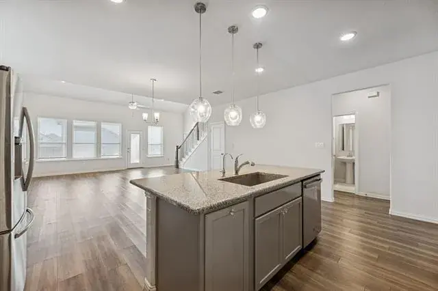 This home features 4 bedroomsm, 3.5 baths, Living room, great size dining room, & Game room. Master bedroom located downstairs. The kitchen features an open-concept layout that flows seamlessly into the living room, highlighted by beautiful granite countertops, high celinings, and an abundance of natural sunlight.