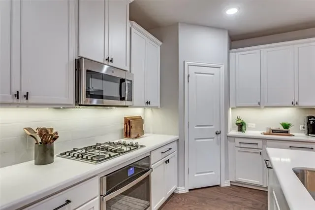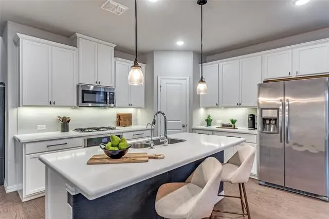Welcome to this exceptional residence in North Fort Worth’s highly sought-after Berkshire community, where refined design and family-oriented living come together seamlessly. This beautifully appointed two-story home features a grand open-concept layout with soaring ceilings, creating an elegant environment ideal for both entertaining and everyday living. The chef-inspired kitchen is the heart of the home show casing quartz countertops, stainless steel appliances, a gas cooktop, designer tile finishes, and a Butler’s pantry offering generous storage and serving space. The main level is enhanced by engineered wood flooring, custom designer paint, and a private home office with French doors.