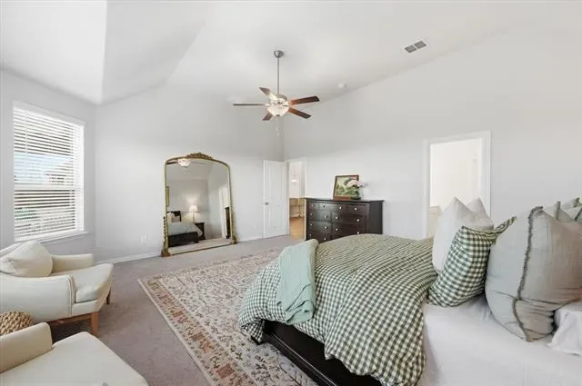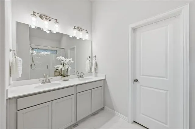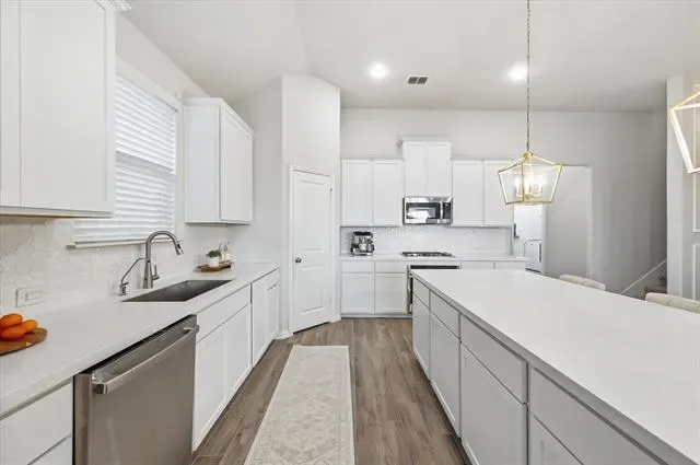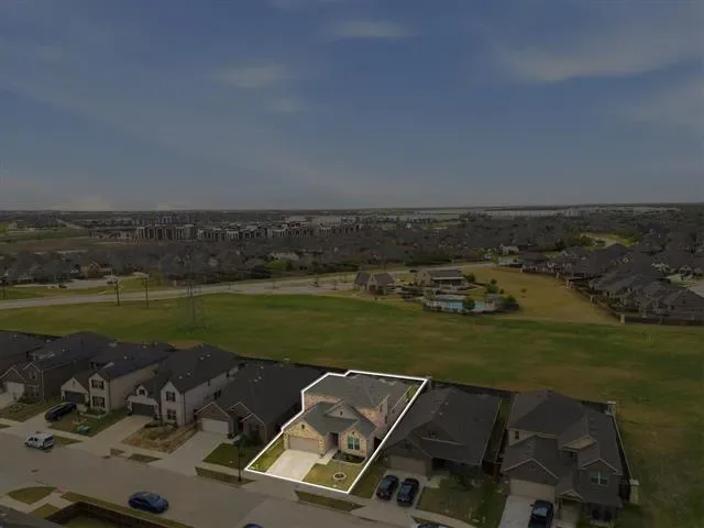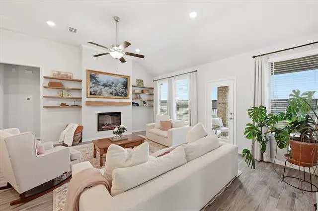 Located in highly sought-after Northwest ISD, this light and bright 4-bedroom home with a dedicated office offers both style and functionality. Situated on a quiet cul-de-sac and backing to serene green space, the home provides added privacy and a peaceful setting—all within walking distance to Berkshire Elementary School and Club House. Step inside to soaring 11-foot ceilings, wood-look tile flooring, and an open, inviting layout. The living area features built-in shelving and an electric fireplace, creating a warm and stylish focal point. The kitchen is a true centerpiece, featuring shaker-style cabinets, quartz countertops, stainless steel appliances, a gas stove, and ample prep space—ideal for both everyday living and entertaining. The spacious primary suite is a relaxing retreat, complete with bay windows, a large walk-in closet, and an en suite bath with a generously sized shower and linen closet. The office, complete with French doors and built-in shelves, offers the perfect work-from-home setup. Downstairs also includes two additional bedrooms, along with both a full bath and a convenient half bath. Upstairs, you’ll find an additional living area, a bedroom with its own en suite bath, and a half bath—perfect for guests or multi-generational living. Located in an amenity-rich community, this home truly has it all—space, style, and a prime location.