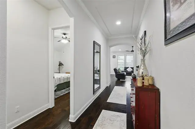 Stunning like new single story that effortlessly blends modern elegance with everyday comfort. Nestled in one of the areas most sought after neighborhoods, this property stands out with exceptional curb appeal and thoughtful after-build enhancements that elevate the home. Pristine engineered hardwood floors, high ceilings, high level granite counters, custom backsplash, designer pendant lights, upgraded primary bathroom with added access to laundry through primary closet. Extended kitchen and primary bedroom. Split bedroom floor plan. Ask your agent for Upgrades List! This one will show like a model with that new construction smell, look, and feel! Seller’s pride reflects this beauty.