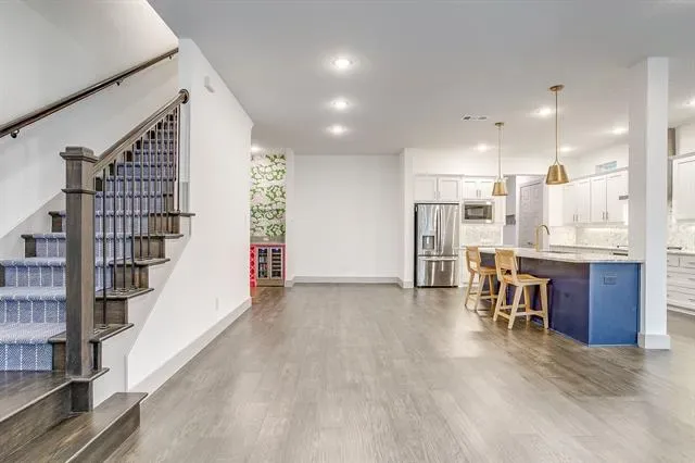 Welcome to this walkable community is in the heart of Fort Worth’s River District! Did you know? It’s only a block away from access to the Trinity Trails! Built in 2021, this beautiful home features 3 bedrooms, 3.5 bathrooms, 2-car rear entry garage and 3 living spaces! Thoughtfully designed, this home’s highlights are the wood floors, storage space, generous spaces, open design and custom upgrades. A favorite is the butler’s pantry just off the dining space with custom wallpaper, shelving, cabinetry and hardware! Located on the 2nd floor is a 2nd living room and all of the bedrooms with the primary suite being split from the 2nd and 3rd bedrooms. The full capacity laundry room resides on the 2nd floor as well. While on the 3rd floor, one will enjoy another oversized living room, full bathroom and the best outdoor balcony you’ll find! The views and the breeze from the balcony will make your sunrises and sunsets a completely delightful daily experience! Not only is this home perfect for urban living on the west-side of Fort Worth, it’s also perfect for entertaining and wonderfully adaptable to a lock and leave lifestyle.