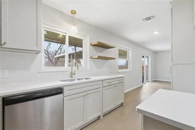 Thoughtfully updated with a modern farmhouse aesthetic this home blends clean design, functional layout, and timeless finishes throughout. Light filled interiors feature a neutral color palette, wide-plank flooring, and modern fixtures that create a warm yet refined atmosphere. The open living spaces flow effortlessly offering flexibility for everyday living and entertaining alike. The kitchen is designed with simplicity and style in mind, featuring crisp cabinetry, quartz countertops, and a layout that connects seamlessly to the main living areas. Bedrooms are well proportioned with ample natural light while the primary suite offers a calm retreat with a spacious feel and well appointed storage.Recent updates, consistent finishes, and a cohesive interior design make this home truly move in ready. Located in an established Fort Worth neighborhood with convenient access to major routes, dining, and local amenities, this property delivers modern comfort with classic farmhouse appeal.