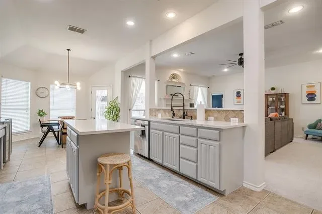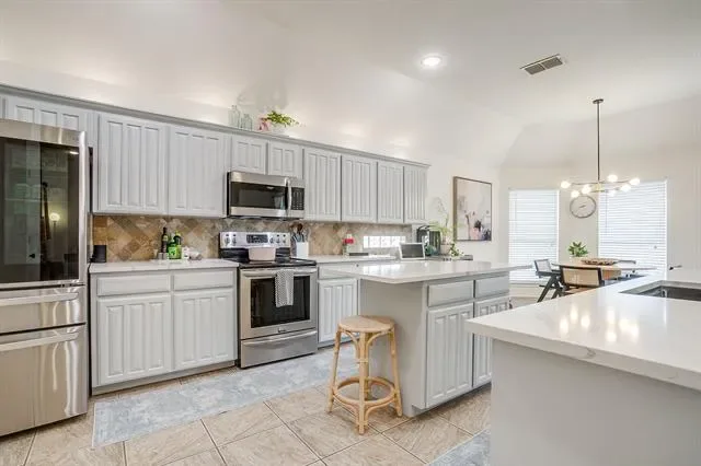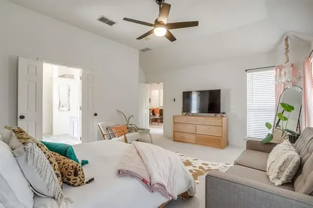 Say Hello to this stunning 4-bedroom, 2.5-bath boho-inspired home that truly stands out from the crowd, one of the only white-painted brick homes in the neighborhood, offering timeless curb appeal with modern charm. Step inside to a warm and inviting layout designed for both everyday living and effortless entertaining. The dining room flows gracefully into the spacious living room, where a cozy fireplace creates the perfect backdrop for dinner parties or relaxed evenings at home. The kitchen is a dream for foodies, featuring ample prep space and storage, range with induction cooking, upgraded quartz countertops, and modern updates including a new sink, dishwasher, and microwave. Whether you’re hosting friends or preparing weeknight meals, this kitchen is designed to impress. The thoughtfully designed split floorplan offers privacy in the primary suite, while an additional downstairs bedroom provides the flexibility to serve as a home office if desired. Upstairs, you’ll find a versatile bonus space perfect for a game room, media room, or private office retreat. Throughout the home, you’ll notice thoughtful touches and stylish updated light fixtures that enhance the boho aesthetic. Major updates bring peace of mind, including a recently replaced roof, HVAC system with extra blown insulation to help keep energy bills low, and a new water heater. Step outside to enjoy the recently added shed for extra storage and charming exterior accent lights that make the home glow in the evenings. This one-of-a-kind white brick beauty blends personality, comfort, and smart updates, don’t miss your opportunity to make it yours!