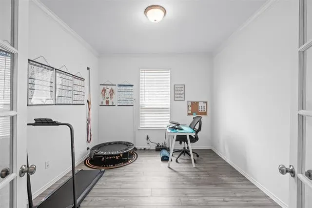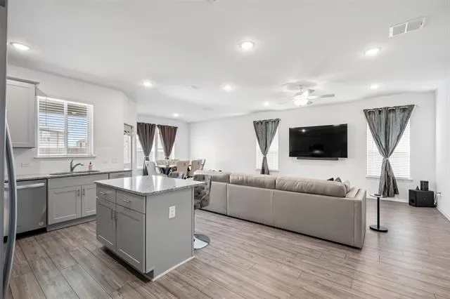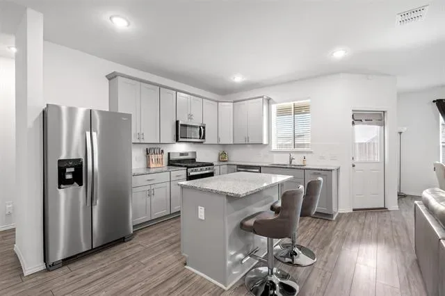 Built by Pulte and designed for modern living, this beautifully crafted single-story home combines quality construction with a bright, open layout and timeless finishes. From the moment you step inside, you’re welcomed by luxury vinyl plank flooring flowing through the main living areas and an abundance of natural light that enhances the home’s inviting feel. The open-concept design centers around a spacious living area that seamlessly connects to the kitchen and casual dining space—perfect for both everyday living and entertaining. The kitchen is a standout, featuring a gas range, granite countertops, a prep island, and extensive cabinetry and counter space to meet all your cooking and hosting needs. A versatile bonus room with glass French doors offers endless possibilities—ideal as a home office, fitness room, or creative studio. The primary suite provides a relaxing retreat with dual sinks, a large walk-in shower, and a generous walk-in closet. Two additional bedrooms and a full bath are thoughtfully positioned to offer comfort and privacy for family or guests. Step outside to enjoy a covered patio overlooking a spacious, fenced backyard, perfect for outdoor dining, weekend gatherings, or simply unwinding in your own private space. A separate utility room and two-car garage add everyday convenience.
