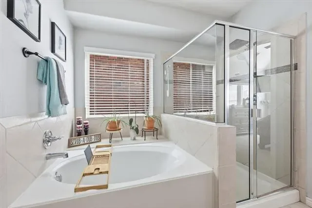 The primary suite is a relaxing retreat featuring soaring ceilings, a massive walk-in closet, and a luxurious soaking tub and separate shower. Upstairs living spaces provide flexibility for game nights, and 3 more bedrooms with a full bath.