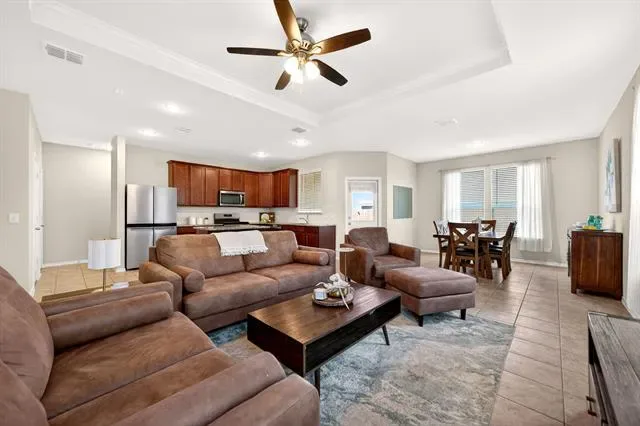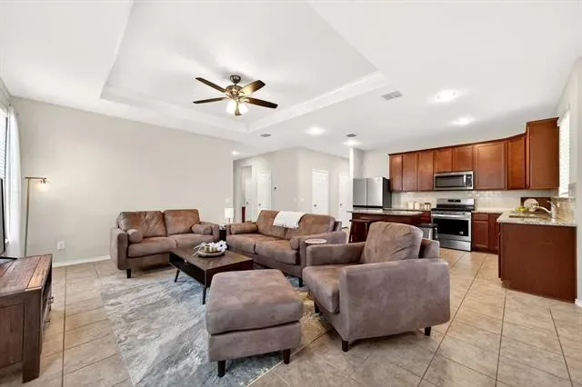WELCOME TO THIS BEAUTIFULLY CARED-FOR ONE STORY HOME IN THE SOUGHT AFTER RIDGEVIEW FARMS COMMUNITY. Step inside and instantly feel at ease in a bright, open layout that’s been freshly painted and thoughtfully designed for both relaxing and entertaining. Gather in the heart of the home, where the chef-inspired kitchen features stainless steel appliances, natural stone countertops, a subway tile backsplash, gas range, and a spacious island — all with the pantry conveniently nearby for easy storage. The living and dining areas flow seamlessly from the kitchen, creating a warm, connected space perfect for everyday living or hosting friends. Tucked away for privacy, the spacious primary suite offers a peaceful retreat with an updated en-suite bath featuring new light fixtures and a generous walk-in closet. Two additional split bedrooms and a bonus room at the front of the home provide flexible space for family, guests, work, or hobbies. Step outside to the covered patio and imagine quiet evenings, weekend get-togethers, or simply unwinding at the end of the day in your own private outdoor space. This home blends comfort, convenience, and a welcoming neighborhood feel — the kind of place where you can truly see yourself settling in and enjoying the moments that matter.