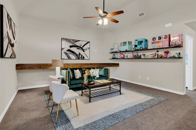 Upstairs, you’ll find a spacious game room that provides the perfect flex space for movie nights, playtime, or a secondary living area. Three generously sized bedrooms with large walk-in closets and a full bath offer comfort and privacy for family or guests. One of the home’s hidden gems is the massive walk-out attic storage space — providing incredible room for seasonal décor, keepsakes, and everything in between.