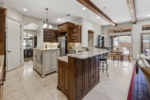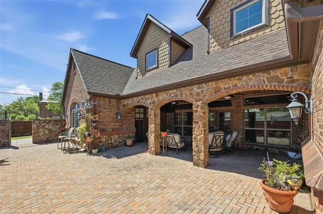Custom-built in 2008, this elegant two-story Tuscan residence ideally positioned on a spacious corner lot in the heart of highly sought-after Ridglea North, offers 3 bedrooms, 3 full baths and a powder bath across 3928 square feet. A dramatic entry welcomes you with a striking brick barrel ceiling, setting the tone for the home’s timeless architectural character. Designed for both comfortable living and effortless entertaining, the open-concept floor plan features an expansive family room anchored by beautiful wood beams and rich hardwood floors. The adjoining kitchen and living spaces flow seamlessly to the outdoors, where French doors open to a private courtyard patio—an inviting setting for gatherings, morning coffee, or relaxed evenings under the Texas sky. Thoughtful custom details throughout include abundant storage, quality craftsmanship, and an unfinished attic bonus room offering excellent potential for additional living space, a studio, or home office. Beautifully landscaped front and side yards enhance the home’s curb appeal and complement the welcoming feel of this established neighborhood. Ridglea North is cherished for its tree-lined streets, distinctive architecture, and strong sense of community. Just minutes from Ridglea Country Club, the shops and restaurants of Camp Bowie, and Fort Worth’s Cultural District, this home offers the perfect blend of neighborhood charm and convenient city living.