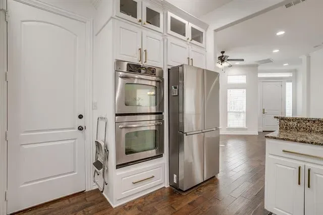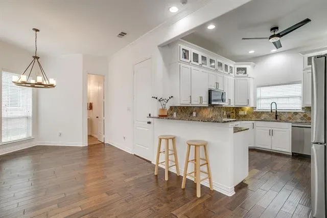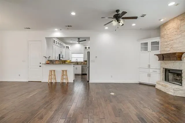 Opportunities like this rarely come up in Ridglea Hills. Tucked inside a charming cul-de-sac, this garden home offers space, character, and a fantastic location. The open-concept first floor creates an inviting flow between the living and dining areas, highlighted by warm engineered wood floors. The kitchen features granite countertops, glass-front cabinetry, and generous storage for everyday living and entertaining. Upstairs, the primary suite feels like a private retreat with its own balcony, double vanities, and a spacious closet. A second upstairs living area adds flexibility for many options. With a garage in the front and another in the back, plus close proximity to great schools, shopping, and dining, this home delivers comfort and convenience in one of Fort Worth’s most desirable neighborhoods.