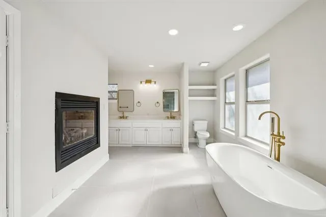 What a great opportunity to buy into Ridglea Hills! This home has been completely remodeled by one of the best contractors in Ft Worth. You are welcomed upon entry by a dedicated office on the right with custom built in bookshelves. On the left you have a perfect bedroom and full bath for a mother in-law, and a large exterior closet. The large open kitchen and living room are welcoming with plenty of room for entertaining. The fireplace in the living room offers a central view all the way through the kitchen. Upstairs your primary has a very large walk in closet, a fireplace, a large balcony and a fully modernized and remodeled bathroom that includes a stand alone bathtub and a large walk in shower. At the top of the stairs you have your first secondary bedroom with two closets, neighbored by a third bedroom. Your upstairs utility room is neighbored by a spacious full bath, all entirely remodeled. Down the hall you have the 5th bedroom with views out front. The home also has a metal roof that should last many many years. The Seller is committed to adding sod and some landscaping once the weather or temperature permits. The back yard has a large deck with a fire pit, perfect for entertainning and gatherings.