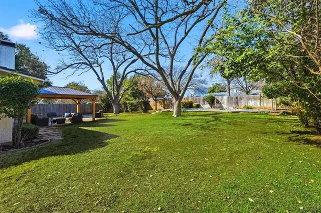 Situated on an oversized lot in the rolling hills of Ridglea Hills, this beautifully maintained home offers space, comfort and an unbeatable location just moments from Camp Bowie. Inside, you’ll find wood floors throughout, neutral paint tones and a flexible layout featuring 3 bedrooms, 2.1 baths,2 living areas and 2 dining areas—ideal for both everyday living and entertaining. The expansive family room is the heart of the home, complete with a cozy fireplace, charming bench seating and windows that overlook the incredible backyard. The kitchen features granite countertops, an eat-in breakfast area and built-in cabinetry that serves as a bar or coffee station. The primary suite includes an ensuite bath with dual sinks, while the secondary bedrooms are generously sized with 2 closets for each room. Step outside to a backyard that truly sets this property apart—flat, usable green space perfect for play, a sparkling pool with a waterfall feature, and room to entertain or unwind under the pergola. Additional highlights include a large front porch, 2 car garage and extra parking space. A rare opportunity to enjoy generous lot size, mature surroundings and close proximity to dining, shopping, and major thoroughfares—all in one of Fort Worth’s most established neighborhoods.