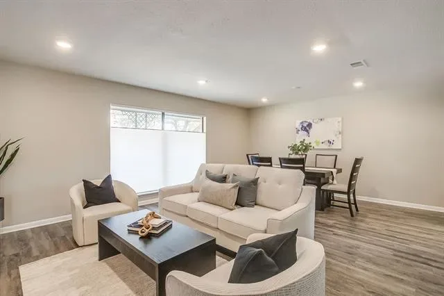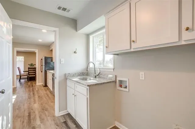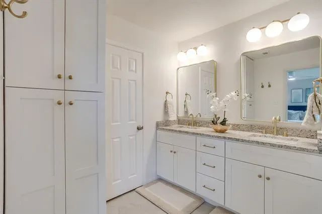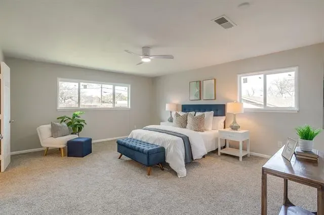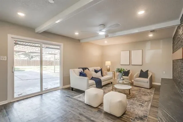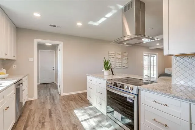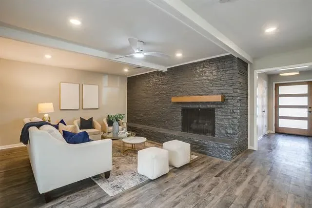 This thoughtfully renovated home in the sought-after neighborhood of Ridglea Hills enjoys a flexible layout. Upon entry through the mahogany front door is an oversized space suitable for a formal living and dining area or family room. The renewed kitchen is an example of style and functionality. Neutral colors with gold tone accents compliment its soft close new cabinetry, arabesque tile backsplash, granite counters, and stainless-steel appliances. The kitchen is open to an area for additional dining and a cozy room with gas fireplace. This area is perfect for a den or use it as your formal dining room or playroom. The primary suite boasts 2 walk-in closets. Its’ magazine worthy bathroom offers a glass shower with designer tiling, double vanity, linen cabinet, and LED backlit mirrors. The secondary bedrooms flank the hall bathroom, and one secondary bedroom enjoys two walk-in closets. The bonus room affords many possibilities as an office, gym, craft room, etc. A gated and fenced backyard has a large 20×16 storage building, pergola covered patio, and carport. This additional carport parking allows for a variety of uses in the garage. The garage spaces are separated from one another affording flexibility to use a space as a workout room, workshop, or more. Additional features include new insulation, continuous vinyl wood flooring in the living areas, and abundant storage. The home enjoys quick access to highways, retail shopping, entertainment, and more.