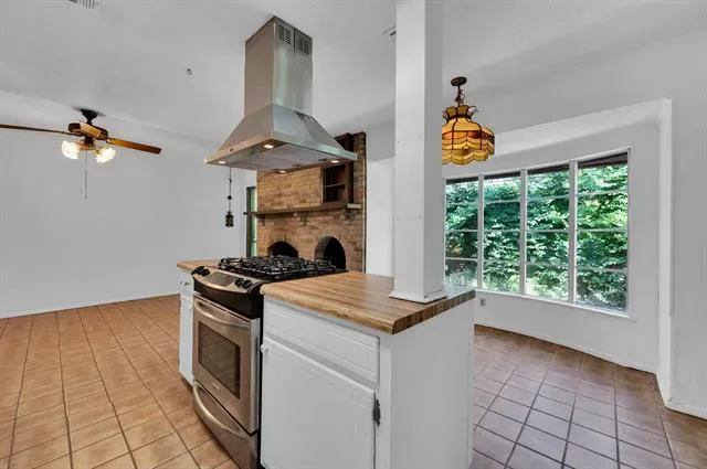 Natural light fills the home through four ceiling windows with retractable screens. Cozy up by the fireplace in the den, or enjoy quiet mornings in the breakfast area during the cooler months.