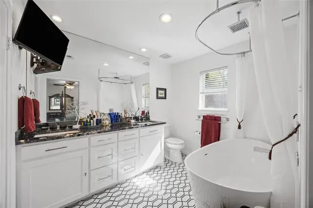 Classic Ridgmar Ranch Style home on fabulous corner lot filled with great character and unexpected touches. Updated wood flooring and paint thru out with fabulously remodeled primary bath, complete with Carrera marble tile and Bain Ultra stand alone tub with shower head Spacious family room with masonry fireplace and quaint bookshelves. INCREDIBLE backyard with next-level outdoor loggia that features a massive stone fireplace to enjoy the outdoors during every season. Great mudroom with tons of additional storage plus oversized garage with epoxy coated flooring, nice back patio, fully fenced backyard and newly installed auto security gate. The BEST location close to Shady Oaks Country Club, great restaurants and retail and terrific proximity to IH30 and all things Fort Worth!