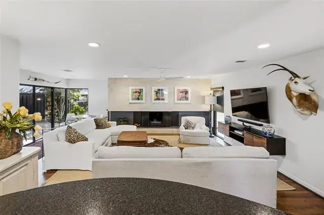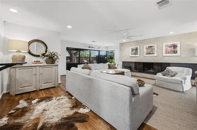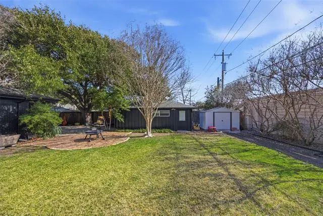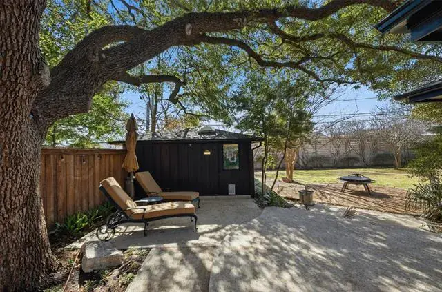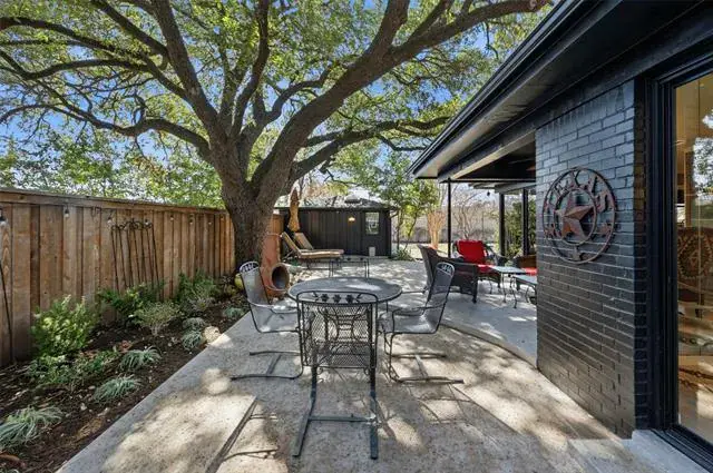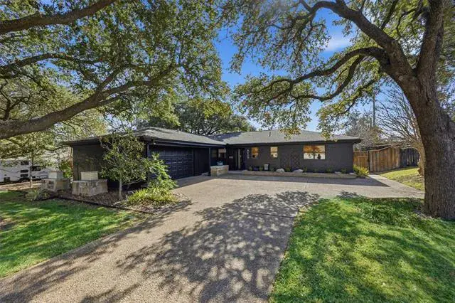 Located in Ridgmar addition this home has a traditional yet contemporary flare with walls of glass in the family room and dining room overlooking patio and landscaped backyard. The large family room boast a marble tile fireplace and hardwood floors. Kitchen overlooks the family room and is open to the dining area. An incredible mud room is located near the kitchen. Full bath, washer and dryer hookups, large pantry and storage. The primary bedroom has a nice size closet and ensuite bath. Two additional bedrooms share a bath. An outbuilding has electricity and heater-air would be perfect for workshop, art studio or easily finished out for guest house. Centrally located with easy access to downtown.