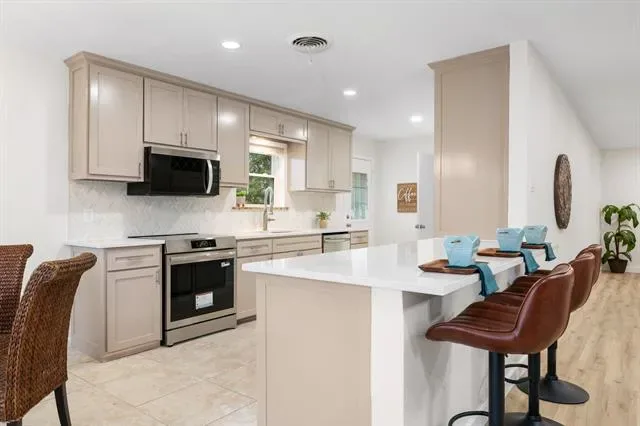 Fresh paint inside and out, Foundation repaired with hydrostatic test and transferrable warranty. Newer electrical panel, Low E windows, HVAC and roof. Lovely, waterproof SPF plank flooring throughout makes for easy, beautiful and durable living. Open concept with eat in kitchen and island dining. Gorgeous Quartz countertops compliment the freshly painted, custom cabinetry with pull outs in most. New stainless steel induction range with convection and OTR microwave. Choice of 2 living areas with option to make one a formal dining or home office. The primary bedroom has not only a massive walk-in closet, but two additional large wall closets with built-in storage. Both bathrooms are updated with designer tile and frameless glass in the primary. Walking distance to Leonard Park, and minutes from the entertainment and dining options of Camp Bowie. Quick access to I-30 makes the commute to downtown for business or Sundance Square and dining a short hop away, truly the best of both worlds. 7 minute drive to the Ft Worth Naval Air Station Joint Reserve Base. Listing Agent is vested in the property. Professional photos to follow. Information is deemed reliable, please verify schools and room sizes.