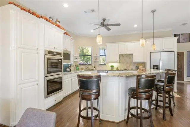 New reduced price and a bargain for this neighborhood! Don’t miss this incredible opportunity to own a home in the highly sought-after River Bend Estates, one of Fort Worth’s premier gated communities—priced below neighborhood values! Located just 10 minutes from downtown, this peaceful, 24 hour guard-gated enclave features lush landscaping, mature trees, and serene waterways throughout. Steps from the West Fork Trinity River Trails, enjoy miles of scenic walking and biking paths. Inside, you’ll find soaring ceilings, wood flooring and a striking see-through fireplace separating two spacious living areas. Other features include an open concept kitchen with granite counters, pretty white cabinetry and stainless appliances including a new double oven. Abundant windows overlook the tranquil, treed backyard with plenty of room to entertain or play. Upstairs features three spacious bedrooms. A rare value in River Bend Estates—this home blends comfort, security, and style in an unbeatable location with easy access to major highways.