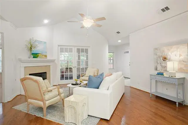 Carefree living at its best in this lovely two bedroom, two bath, two car garage condo located in the Gated River Bend Villas community. This former model, one owner home, has been meticulously maintained! Upgrades throughout, including hardwood floors in the living dining and kitchen. Large gated patio greets you into this light and Bright home. Living room features a corner fireplace and french doors. Kitchen area opens to living & dining area making it perfect for entertaining. Kitchen features granite countertops, stainless steel appliances & pull out pantry! Wonderful split bedroom floor plan. Large master retreat with en suite & large walk-in closet. You will love the natural light in the spacious sunroom which is a great flex space for an office or extra living area. This unit is perfectly located across from the clubhouse and pool. You will fall in love with this friendly community! A perfect lock and leave home conveniently located close to Clearfork and other great shopping areas. Come see today!