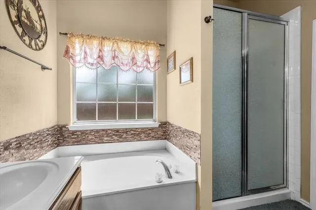 The primary suite offers abundant natural light, built-in shelving, a walk-in closet, and a spacious ensuite bath with separate shower and tub. Convenient access to I-820 makes commuting easy.