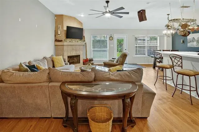 LOCATION LOCATION LOCATION! Just a short walk to River Trails Elementary and a short commute to DFW Airport or downtown Fort Worth! Discover comfort and convenience in this delightful 3 bedroom, 2 bath residence within the highly rated HEB ISD! Offering a spacious interior spanning a welcoming floorplan this home balances everyday living with a touch of nature. Step inside to find a generous living area featuring a cozy gas log fireplace, ideal for gathering with family and friends! The kitchen invites culinary creativity with its L shaped breakfast bar and convenient pantry, offering ample storage and workspace. The open living space seamlessly transitions to cater to both the entertaining and relaxed living. Retreat to the sizable primary suite designed for relaxation, complemented by an ensuite bath that boasts dual sinks, a soaking tub and a separate tiled shower for a spa like experience. Thoughtfully designed split bedrooms provide privacy and versatility, making each room a personal haven. Outside, the property is shaded with established trees enhancing the curb appeal of the brick exterior. The expansive backyard comes complete with a storage building and a chicken coop for those interested in sustainable living!