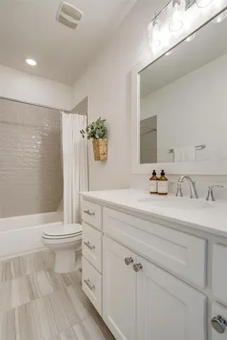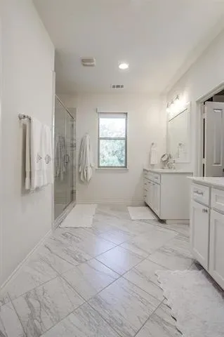 Upstairs, the primary suite offers two large walk-in closets, double vanities, and a spacious walk-in shower. A fully upgraded powder bath downstairs adds convenience for guests.