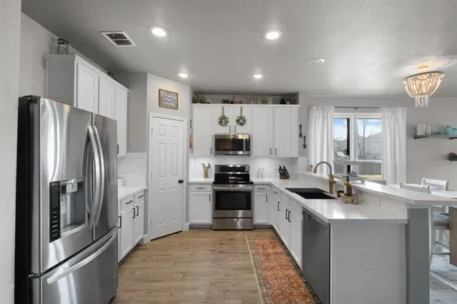 Step inside to an open, airy layout enhanced by durable wood-look tile flooring that combines modern elegance with everyday practicality. The stunning kitchen is truly the heart of the home, featuring sleek quartz countertops, crisp white cabinetry, a deep sink, and abundant prep space ideal effortless entertaining. All bedrooms are conveniently located downstairs, creating a private and functional retreat separate from the expansive upstairs game room. Whether you envision a media room, home office, fitness space, or playroom, this oversized bonus area offers the flexibility today’s buyers need. Enjoy year round comfort with brand new soundproof windows and an HVAC system updated in 2018, providing energy efficiency and quiet living. With major updates already completed, this home eliminates the worry of large upfront expenses, simply move in and start enjoying. Thoughtfully upgraded, meticulously maintained, and ideally located, this home checks all the boxes. Schedule your showing today and see why it stands out from the rest.