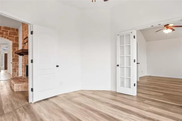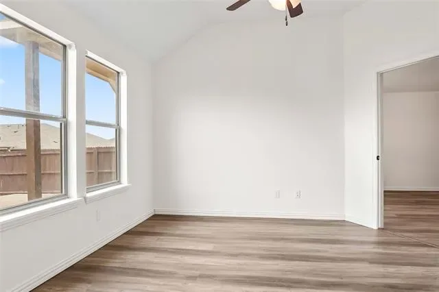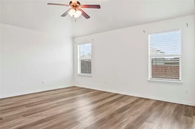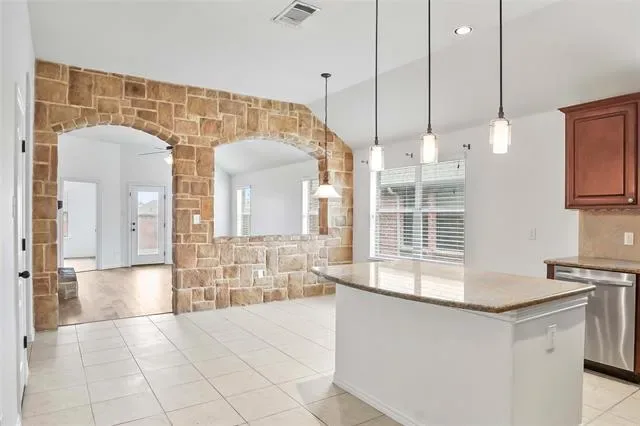 Come see this beautiful single-story home located in the highly sought-after Northwest ISD! This 3-bedroom, 2-bathroom home offers a thoughtfully designed open floor plan with split bedrooms for added privacy. The spacious living room overlooks the backyard, where you can relax or entertain under the covered patio. Enjoy stylish and low-maintenance laminate flooring throughout the home, with the exception of the primary closet, plus ceiling fans for added comfort. The open-concept kitchen features stainless steel appliances, granite countertops, and a charming dining area accented by a stunning stone wall. A versatile flex space just off the primary suite makes the perfect home office, playroom, or can easily be converted into a fourth bedroom. Conveniently located with quick access to I-35W and Highway 114, and just minutes from Tanger Outlets, shopping, and dining. This home truly offers comfort, style, and convenience all in one!