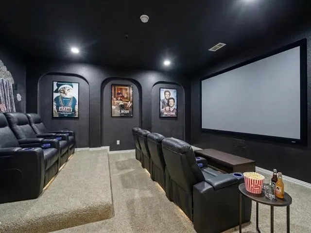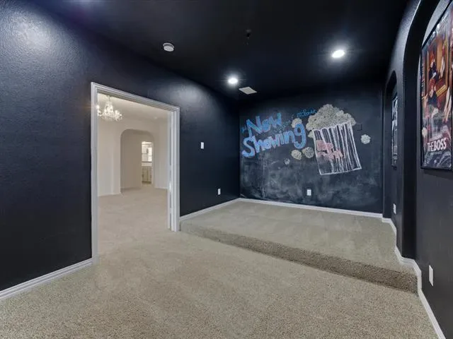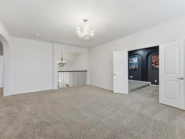 Upstairs, a second living area serves as a game room or bonus room, while the dedicated media room with French doors creates a true theater-style experience for movies, sports, or gaming nights.