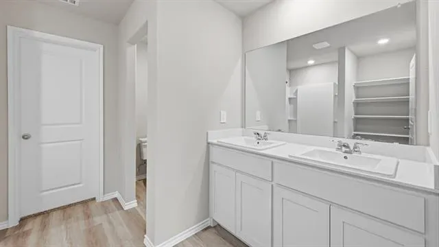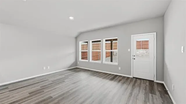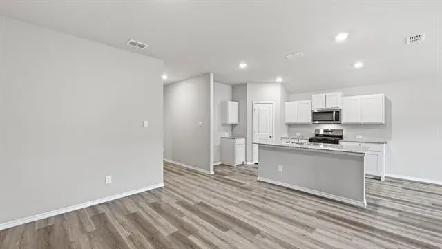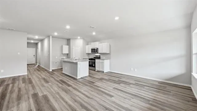 Stunning new D.R. Horton home in the Rock Creek Ranch community located in Fort Worth and Crowley ISD! The single-story Easton floorplan elevation A, with an estimated Summer completion, offers 4 bedrooms, 2 bathrooms, and a 2-car garage with a spacious open-concept layout designed for both comfort and everyday functionality. The family room flows seamlessly into the dining area and contemporary kitchen, creating a warm and inviting space ideal for gatherings and entertaining. The thoughtfully designed kitchen features quartz countertops, 36” painted cabinets, stainless steel appliances, a gas range, stainless steel sink, center island, and a walk-in pantry for ample storage. The private primary suite is tucked away and includes an en-suite bath with dual quartz vanities, a 5-foot oversized shower, and a walk-in closet conveniently located off the bathroom. Three secondary bedrooms and a full bathroom with a quartz vanity top provide flexible space for family members, guests, or a home office. Luxury vinyl plank flooring enhances the main living areas and wet zones, offering durability and low-maintenance appeal. Built with energy-efficient construction and equipped with America’s Smart Home Technology. Exterior highlights include a landscape package, full sprinkler system with rain sensor, privacy fencing, and more. Planned community amenities include a future pool, parks, playground, and walking trails. Located just two miles from Benbrook Lake with easy access to shopping, Fort Worth attractions, and nearby schools.