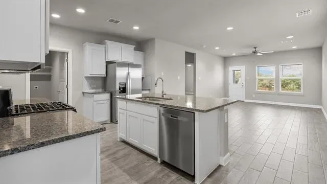 Have a fabulous new construction home built by D.R. Horton, America’s Builder since 2002, in the beautiful community of Rock Creek Ranch located in Fort Worth and Crowley ISD! This thoughtfully designed two-story Hanna floorplan-elevation G offers 4 bedrooms, 2.5 bathrooms, a game room, and a 2-car garage, with an estimated Spring completion. Step inside to an inviting open-concept layout featuring a spacious family room that flows into the dining area and a modern kitchen complete with quartz countertops, 36 inch upper cabinetry, stainless steel appliances, gas range, walk-in pantry, and a large center island. Luxury vinyl plank flooring is included in the entry, hallways, kitchen, dining, family room, utility room, and all wet areas. The private primary suite is located on the first floor and offers a generous walk-in closet and an en-suite bath featuring an oversized shower and quartz vanity tops. Upstairs, you’ll find three additional bedrooms, a full bath, and a spacious game room. Built with energy-efficient construction and America’s Smart Home Technology. Exterior features include a covered front porch and patio, 6-ft stained wood privacy fence with metal posts, full sod, sprinkler system, and landscape package. Community amenities include a future pool, park-playground, and walking trails. Located near Benbrook Lake and Fort Worth attractions, and nearby education options.