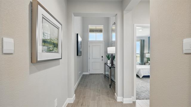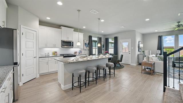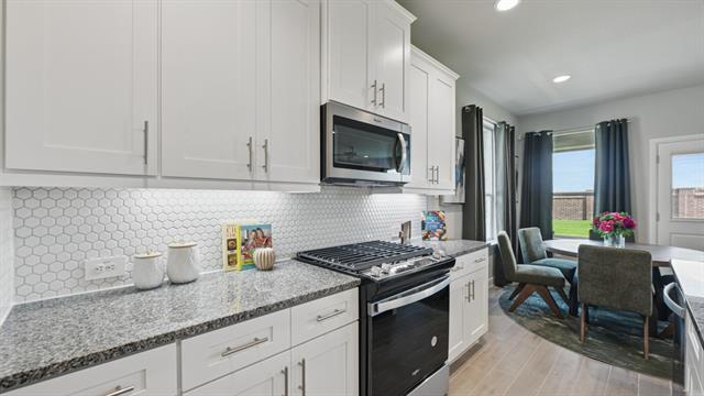 Beautiful new D.R. Horton home in the Rock Creek Ranch community located in Fort Worth and Crowley ISD! The two-story Mallard Floorplan, Elevation F, with a quick estimated Winter completion, offers 5 bedrooms, 3.5 bathrooms, a game room, loft, and a 2-car garage, thoughtfully designed to provide flexible living space for growing households and modern lifestyles. The open-concept first floor features a seamless flow between the family room, dining area, and contemporary kitchen, creating an inviting space ideal for everyday living and entertaining. The kitchen is well-appointed with quartz countertops, 36” painted cabinets, stainless steel appliances, a gas range, stainless steel sink, center island, and a walk-in pantry for added functionality. The private primary suite is conveniently located on the first floor and includes an en-suite bath with dual quartz vanities, a 5-foot oversized shower, and a walk-in closet. A first-floor study or fifth bedroom adds versatility, while a powder bath provides convenience for guests. Upstairs, secondary bedrooms are thoughtfully arranged alongside a spacious loft and game room, offering additional living and entertainment space, along with two full bathrooms featuring quartz vanity tops. Luxury vinyl plank flooring enhances the main living areas and wet zones for durability and easy maintenance. Built with energy-efficient construction and equipped with America’s Smart Home Technology. Exterior highlights include a landscape package, full sprinkler system with rain sensor, and privacy fencing. Planned community amenities include a future pool, parks, playground, and walking trails. Located just two miles from Benbrook Lake with easy access to shopping, Fort Worth attractions, and nearby schools.
