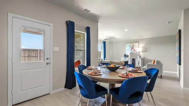 Available for Quick Move-in! Stunning new D.R. Horton home in the Rock Creek Ranch community located in Fort Worth and Crowley ISD! Complete and Move-In Ready! The single-story Dove Floorplan, Elevation B, offers 3 bedrooms, 2 bathrooms, and a 2-car garage, featuring an efficient open-concept layout designed for comfortable everyday living. The family room, dining area, and contemporary kitchen flow together seamlessly, creating a bright and inviting space ideal for entertaining and gathering. The well-appointed kitchen includes quartz countertops, 36” painted cabinets, stainless steel appliances, a gas range, stainless steel sink, center island, and a walk-in pantry for practical storage. The private primary suite features an en-suite bath with dual quartz vanities, a 5-foot oversized shower, and a walk-in closet conveniently located off the bathroom. Two secondary bedrooms and a full bathroom with a quartz vanity top provide comfortable accommodations for family members, guests, or a home office. Luxury vinyl plank flooring enhances the main living areas and wet zones, offering durability and easy maintenance. Built with energy-efficient construction and equipped with America’s Smart Home Technology. Exterior highlights include a landscape package, full sprinkler system with rain sensor, and privacy fencing. Planned community amenities include a future pool, parks, playground, and walking trails. Located just two miles from Benbrook Lake with easy access to shopping, Fort Worth attractions, and nearby schools.