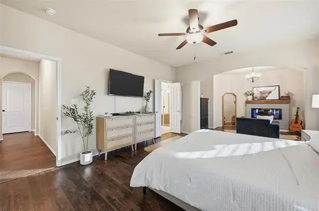 Highly sought after two-story four-bedroom home located on an oversized lot in Fort Worth within Keller ISD, offering a light and bright open floor plan with high ceilings and abundant natural light throughout. The formal dining space at the front of the home provides flexibility for a home office or additional living area, while the split layout offers privacy for the oversized primary suite featuring a cozy faux fireplace sitting area. Stunning and durable laminate flooring runs throughout the entire home, creating a cohesive and low maintenance living space. The kitchen opens seamlessly to the expansive family room and includes an island with breakfast bar seating, granite countertops, an undermount sink, upgraded faucet, ample cabinetry, and breakfast bar seating ideal for entertaining. Upstairs features the fourth bedroom, third full bathroom, and an extra large game room perfect for guests, media, or play space. The spacious backyard offers plenty of room to relax, entertain, or customize to your needs, all while enjoying the privacy of a quiet cul de sac setting. Conveniently located near Alliance Town Center, shopping, dining, entertainment, parks, and major highways including I 35W and 170, this home provides easy access to everyday conveniences and a smooth commute throughout the Metroplex.
