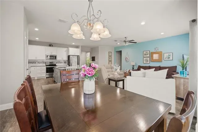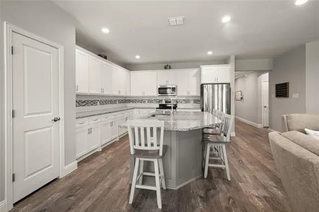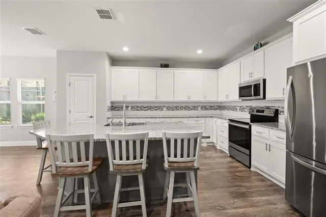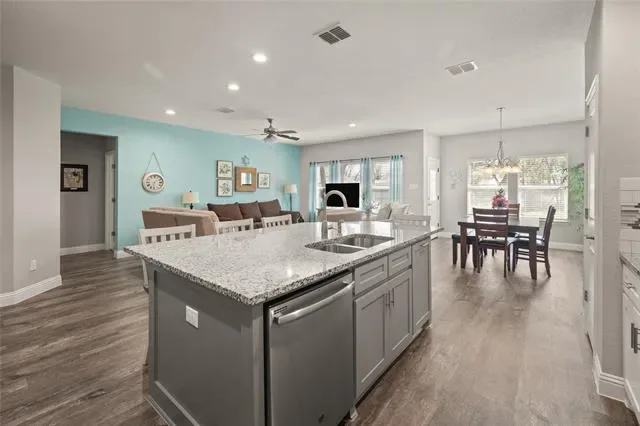 Step into this like-new four bedroom, two bath home with picture-perfect curb appeal! The charming front porch is ideal for relaxing with morning coffee. Built just 5 years ago, it offers a modern neutral palette and abundant natural light for a bright, inviting feel. While it appears cozy from the outside, this home is spacious and open inside. The kitchen offers generous counter space, beautiful granite finishes, island seating, and endless storage. It flows seamlessly into the living and dining areas allowing for family-time and holiday celebrations. Natural stone accents continue into the bathrooms for a touch of luxury. The fourth bedroom adds flexibility as a home office, craft room, or flex space. Enjoy a mudroom with backpack-drop zone keeping the rest of the home clutter-free. The expansive backyard is ideal for everyday play, entertaining, and cookouts. Gutters and drip irrigation make upkeep easy. Bonus: With a strong offer, refrigerator, washer, and dryer convey. Make an appointment today to see this move-in-ready home in an established neighborhood with modern updates and a functional layout!