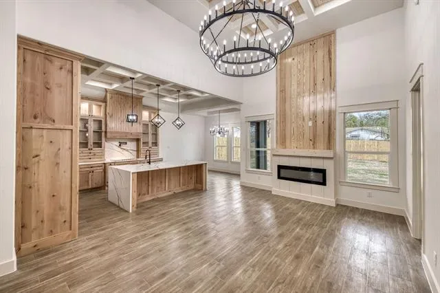 Welcome to this stunning new construction home just minutes from the historic Fort Worth Stockyards and vibrant Downtown. This beautifully designed home offers a perfect blend of modern style and rustic charm with eye-catching exterior details, rich wood accents, and impressive curb appeal. Step inside to an open and spacious floor plan featuring soaring ceilings with custom wood beam details, designer lighting, and large windows that fill the home with natural light. The living area flows seamlessly into a chef-inspired kitchen showcasing custom wood cabinetry, a large waterfall island with quartz countertops, built-in appliances, and stylish pendant lighting—perfect for entertaining. The home also features a thoughtfully designed layout with spacious bedrooms, modern finishes, and elegant touches throughout. The primary suite offers a relaxing retreat, while the additional rooms provide flexibility for guests, a home office, or growing families. Located in a prime Fort Worth location with easy access to dining, entertainment, and shopping, this home offers the perfect opportunity to enjoy modern living just minutes from some of the city’s most iconic destinations.
